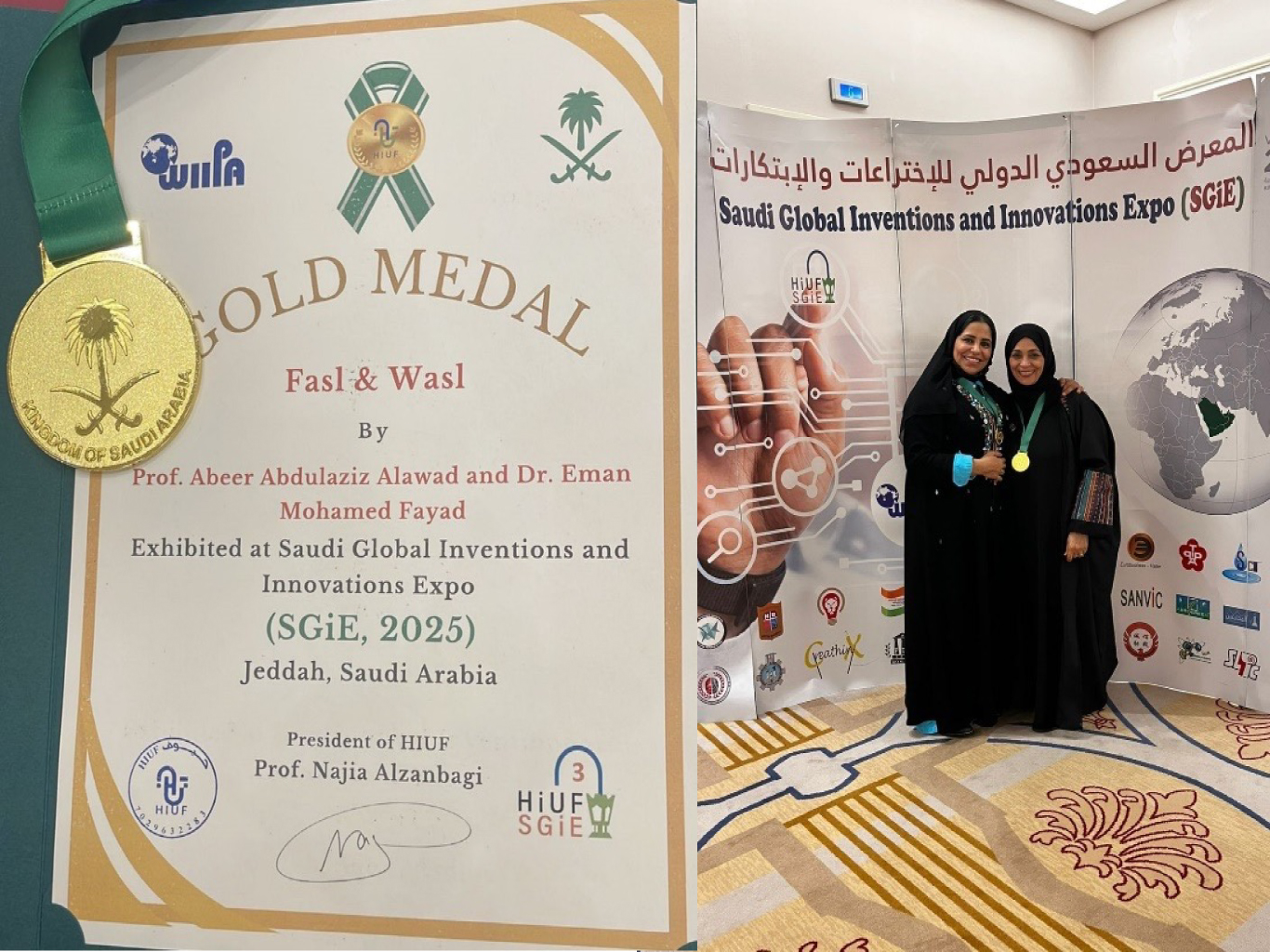 Dr. Eman Fayyad, in collaboration with Prof. Abeer Alawwad, was awarded the gold medal for a pioneering training project aimed at empowering mothers to manage their children’s digital disengagement in an effective educational manner. The “Fasl & Wasl” initiative provides interactive alternatives that help rebuild family bonds and reduce reliance on digital devices. The project was honored at SGiE for its excellence as an innovative solution that meets a contemporary educational need through a practical and intelligent approach.