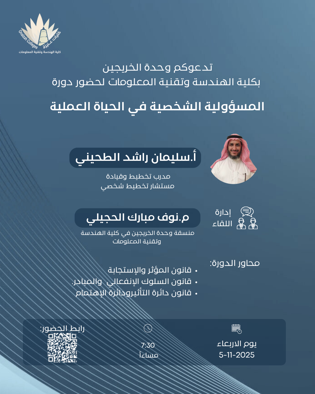05 نوفمبر 2025دورة المسؤولية الشخصية في الحياة العملية23 أكتوبر 2025دورة التهيئة لسوق العمل16 سبتمبر 2025دورة التفكير التصميمي للمنتجات الرقمية07 سبتمبر 2025دورة البلوكتشين: من المفاهيم الأساسية إلى التطبيقات المستقبلية02 سبتمبر 2025دورة التصميم المعماري والحضري في صناعة الألعاب